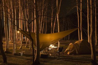 湖畔の林の中にセッティングした姿は、ほれぼれとするような美しさでキャンプの楽しさを実感させてくれます。