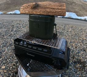その後、アウトドア用のコンロ(ガソリンではホエブスなど、ガスではプリマスなど)と七輪の炭火という二種類のバーナー(ツー・バーナー)を併用するスタイルが、続いてきました。