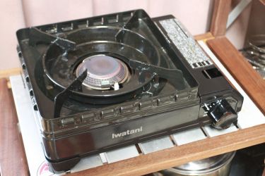冬キャンプでは、ストーブだけでなく、コンロをテント内で使用することも前提になります。ガソリンは対象外、ガス系も軽いだけが特徴の物しか持っていなかったので、CB缶を使い、風に強いいくつかの機種を候補に考えましたが、どれもイワタニ製だったので、単純に最強スペックだったタフまるを選びました。